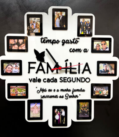 Relógio Personalizado em Acrílico – Tempo Gasto com a Família Vale Cada Segundo